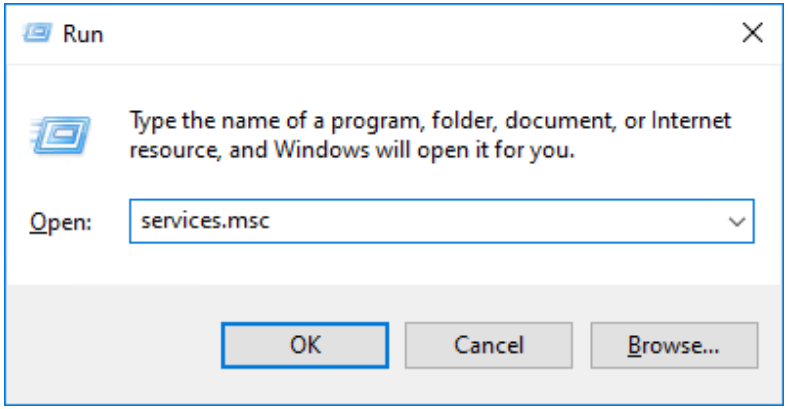 同时按下键盘上的Windows + R键以调出“运行”实用程序。输入不带引号的“ services.msc ”,然后点击确定按钮。这将在单独的窗口中启动服务。