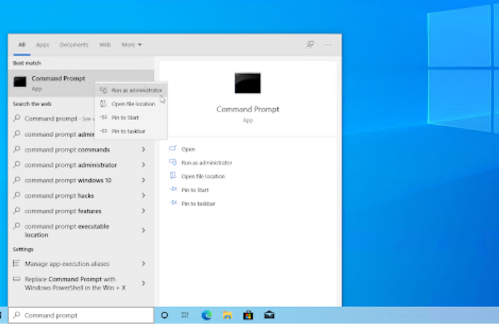 在搜索框中键入命令提示符。当您在结果中看到它时,右键单击它并选择Run as Administrator 。如果您使用的是没有管理员权限的本地帐户,请先单击此处。