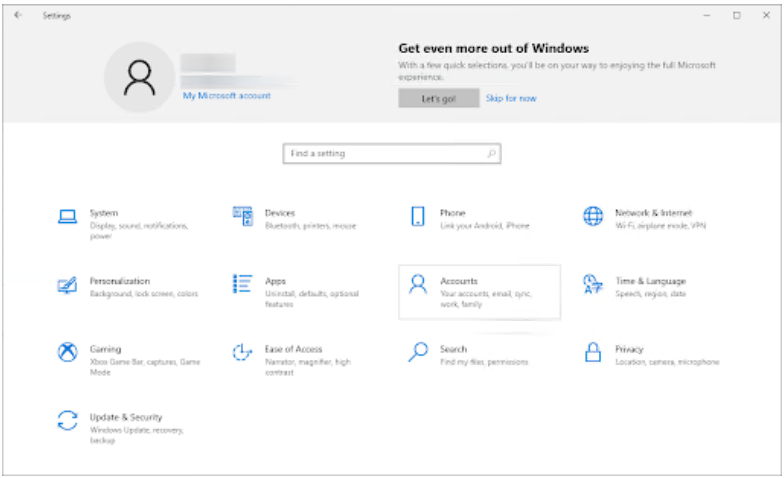 单击“帐户”磁贴。