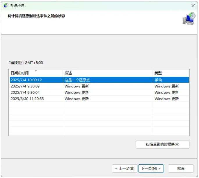 创建成功后,回到之前的窗口,可以在【系统还原】中找到刚刚创建的还原点,等到我们需要还原时也是在这里启动它哦。