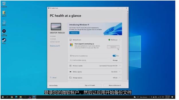 下载后,打开健康检查应用程序并展开“备份和同步”。登录您的微软帐户,然后让应用开始备份文件。