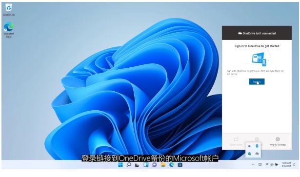 在Windows 11的系统托盘上,找到 OneDrive的云图标并将其打开。登录链接到OneDrive备份的Microsoft帐户。