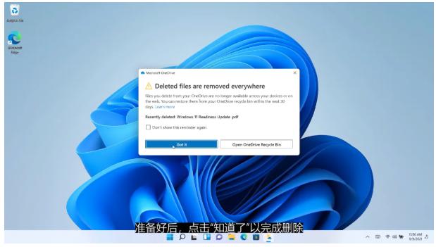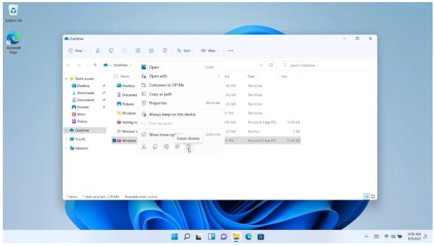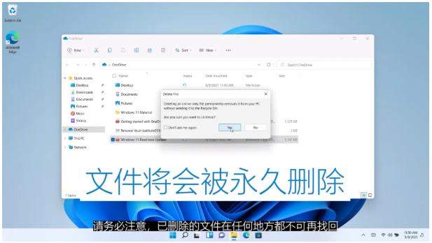 点击OneDrive图标,然后打开文件夹。页面将显示OneDrive储存的所有文件名,选择要删除的文件并使用垃圾桶图标或键盘上的删除键删除。Windows 11会要求您确认操作,点击“是”。