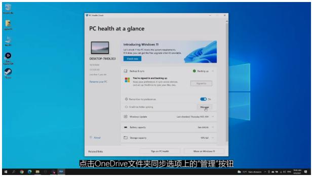 点击OneDrive文件夹同步选项上的“管理”按钮,来管理要包含在备份中或OneDrive文件夹中的特定设置。