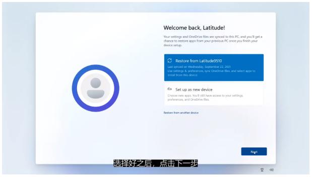 在您第一次使用Windows 11并同步您的设置和OneDrive文件时,选择要从中恢复数据的设备;例如从您同步的Windows 10系统,或从其他设备恢复;只要您是使用的OneDrive创建备份就可以进行恢复。