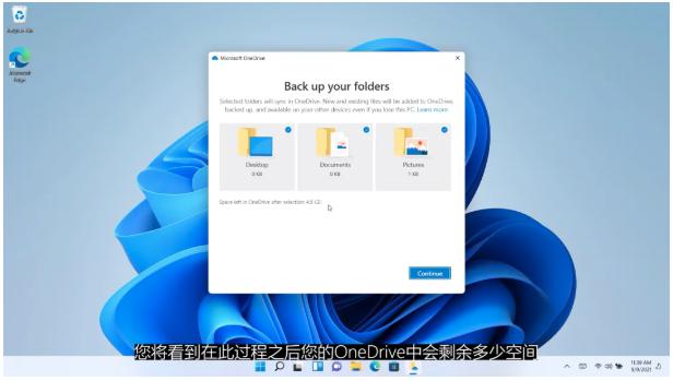 确认备份中自动包含的选定的文件夹将同步到云端。根据您的选择,您将看到在此过程之后您的OneDrive中会剩余多少空间。